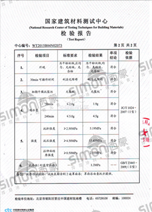 西蒙特汀的粘接強(qiáng)度是瓷磚粘接劑國家標(biāo)準(zhǔn)中C2型瓷磚膠(最高型)拉伸粘接原強(qiáng)度255%