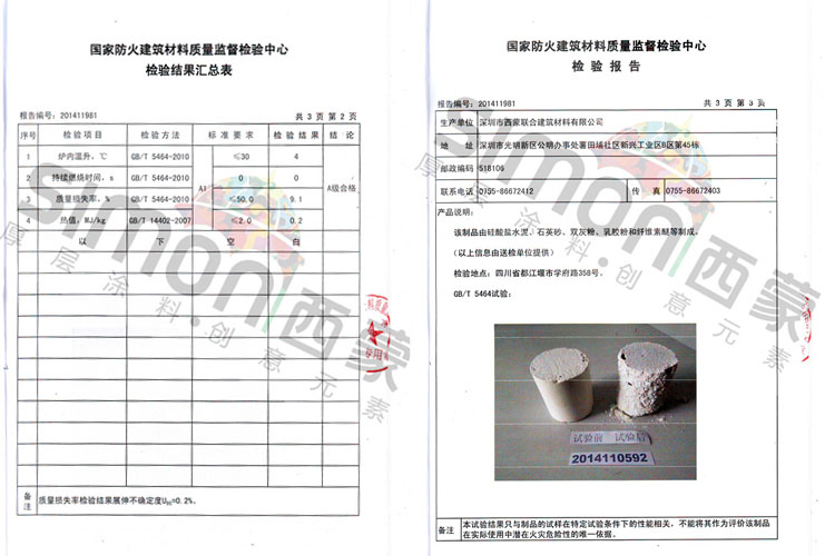 據(jù)國家防火建筑材料質(zhì)量監(jiān)督檢驗中心 檢測報告號:201411981
