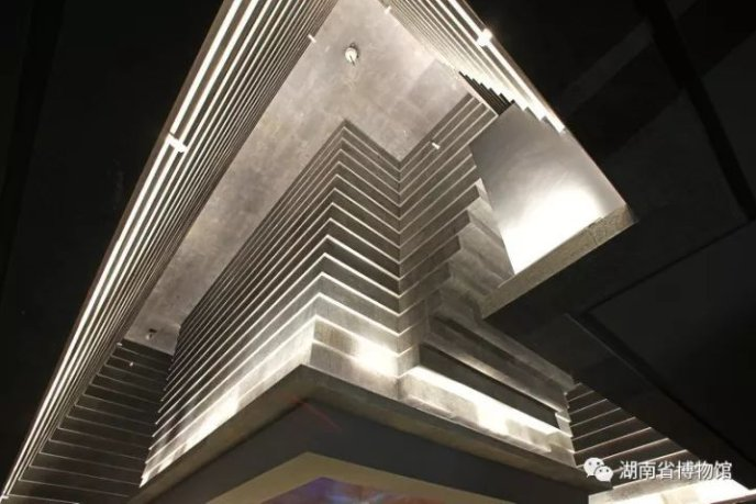 湖南省博物館/室內(nèi)與展陳設(shè)計藝術(shù)總監(jiān)中央美術(shù)學院城市設(shè)計學院副院長黃建成談到:在設(shè)計中,“我認為“馬王堆”展館最大的特色是按1:1的比例,復原馬王堆漢墓墓坑結(jié)構(gòu),重現(xiàn)階梯式夯土墓,來貫穿整個馬王堆參觀的流程,使參觀者能直觀地感受到文物出土地的現(xiàn)場氛圍,并采用疊加的、立體的、穿透式的形式,承接三層以上的參觀流線,使建筑空間的營造與文物的展示融為一體”。(以上部分引用湖南博物館李毅/李婷婷《設(shè)計師對話》)。