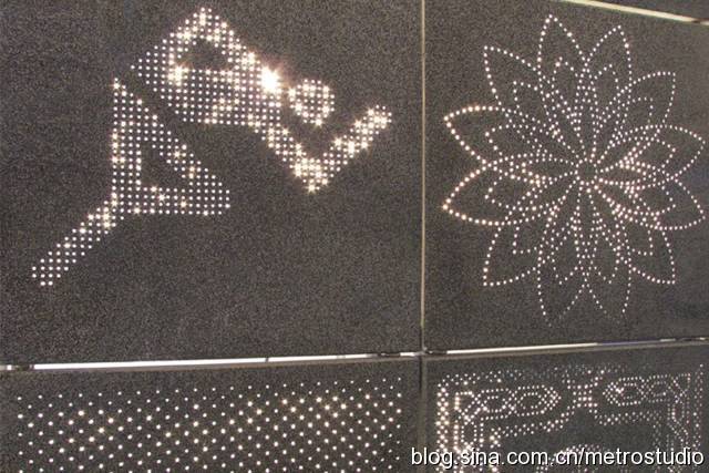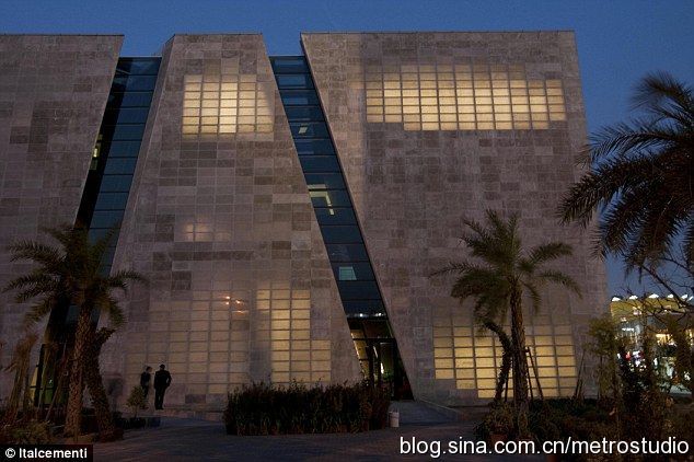 意大利水泥集團的建筑師團隊用特殊樹脂為意大利館制造了一種“透明水泥”,可以讓光線直接穿過而進入房間,使整面墻看起來像是一個巨大的窗戶。這種材料,表面有數(shù)十個小孔,可以在不影響結(jié)構(gòu)完整性的同時讓光線穿過。