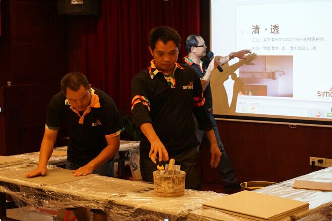 2015年8月18日,深圳市西蒙聯(lián)合建筑材料有限公司在深圳藝術(shù)殿堂華僑城鴻波酒店開(kāi)辦了西蒙清水混凝土飾面材料及工法培訓(xùn)會(huì)。